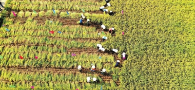 当天畅马村畅家湾举行首届农民丰收节,开启今年糯稻正式收割。该村以发展糯稻产业为抓手,正努力探索一条集农业生产、观光休闲、农事体验、生态旅游于一体的农旅深度融合发展之路。■通讯员刘佳文孙缙摄