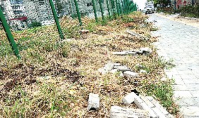在长征路延长线,靠近槐荫大道路段的人行道旁,有水泥砖块散落,多个编织袋内均是废弃水泥块,影响市容市貌。
