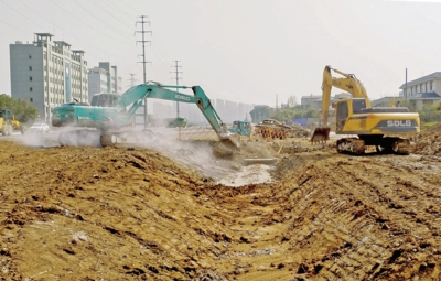 3月28日,施工机械在孝感城区澴川路道路改造及配套设施工程项目现场平整槐荫大道路基。澴川路道路改造及配套设施工程项目为市中心城区政府重点投资项目,项目起点位于黄香路,途经孝汉大道、复兴大道、槐荫大道、仙女湖路,止于澴川路与硚孝大道交会处,全长5921米,工程建成后此段道路将成为我市城区主干道,方便市民和车辆安全顺畅通行。(全媒体记者李文勇 摄)