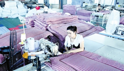 该公司是集服装、家纺床上用品等各类纺织制成品的设计、生产、销售于一体的纺织企业。如今,抓住“一带一路”机遇,产品远销欧美和非洲等国际市场。(全媒体记者李文勇 特约记者程爱华 摄)