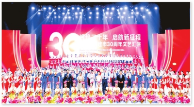 8月16日晚,孝感高新区“辉煌三十年启航新征程”文艺汇演在孝感市文化中心大剧院举行。晚会节目以高新区干部职工自编自演为主,通过歌舞、小品、朗诵等文艺节目,回顾高新区的发展历程,歌颂孝感建市三十周年取得的辉煌成就。(全媒体记者张高远 实习生何婧如 摄