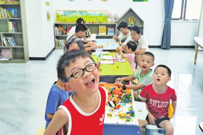 8月16日,市高新区孝天办事处柏树社区的孩子们在社区儿童室内开心地玩耍。