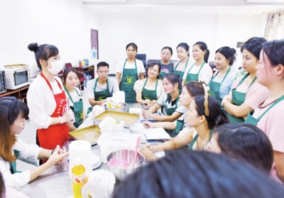 9月9日,职业指导老师给学员讲解糕点制作工艺。