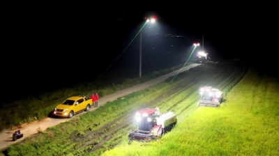 国网孝感供电公司秋收保电服务队从秋粮抢收需求出发,全力调集4台应急照明无人机设备,“电”亮稻田,以可靠供电服务为农民抢收秋粮保驾护航,助力乡村振兴。