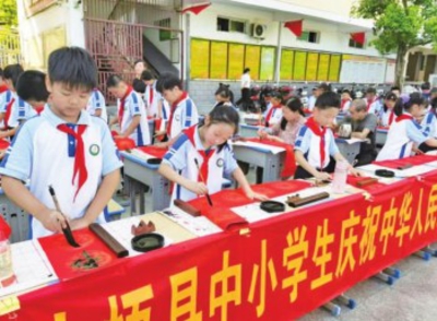 文化盛宴,喜迎国庆。9月29日,大悟县委宣传部、大悟县书法家协会联合举办中小学生“庆国庆”书法展示活动,让大家在书画作品中感受时代的变迁。大悟县图书馆开展“阅享国庆品书香”主题阅读活动,工作人员为小读者们讲述了《我爱你中国》绘本故事,激发孩子们对祖国的热爱之情。