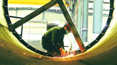 日前,在孝昌县海洲环境科技(湖北)有限公司生产车间内,工人正在焊接废气综合治理设备。该公司拥有燃烧、密封、自控三大核心技术,预计可实现年产值1亿元以上。全媒体记者李文勇 特约记者高玉峰 摄